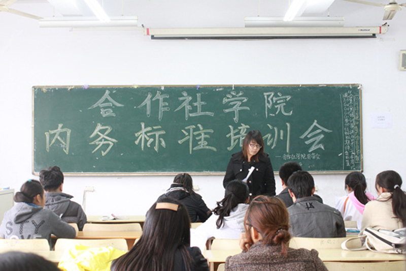 培训会由生活部部长张雪玲负责。培训开始前,生活部的干事们向大家发放了《2012年合作社学院内务标准》的文件,该文件详细介绍了我院关于宿舍卫生、物品摆放等的标准要求及充电用电的注意事项。随后,张雪玲针对该文件内容为大家做了详细说明;在检查内务的时间安排上,张雪玲强调检查人员要合理把握,要在不影响同学休息与上课的前提下完成检查工作。