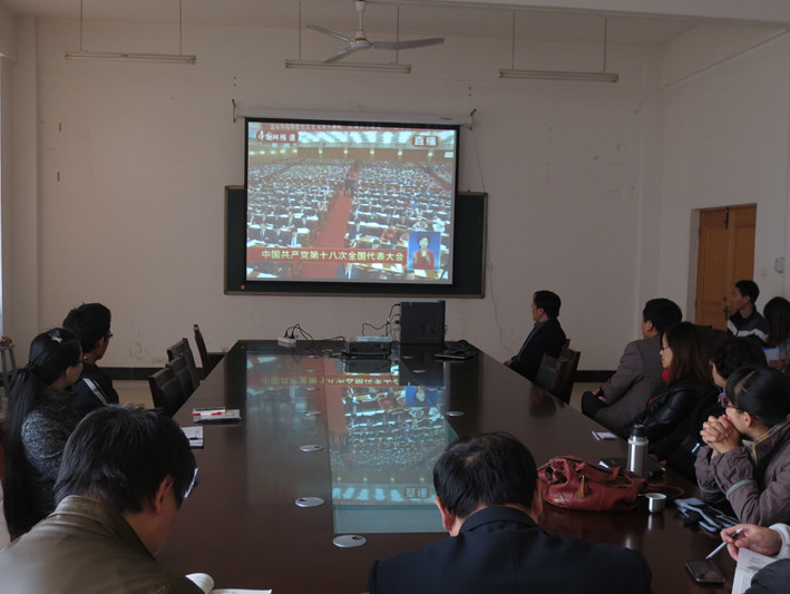 中国共产党第十八次全国代表大会将于8日上午9时在北京人民大会堂开幕。届时,海洋科学与工程学院的全体党员于会议室观看开幕式直播,参加这次活动的领导有海洋学院党总支书记周顺,分团委书记刘兴华还有学院的老师及学生党员、预备党员。