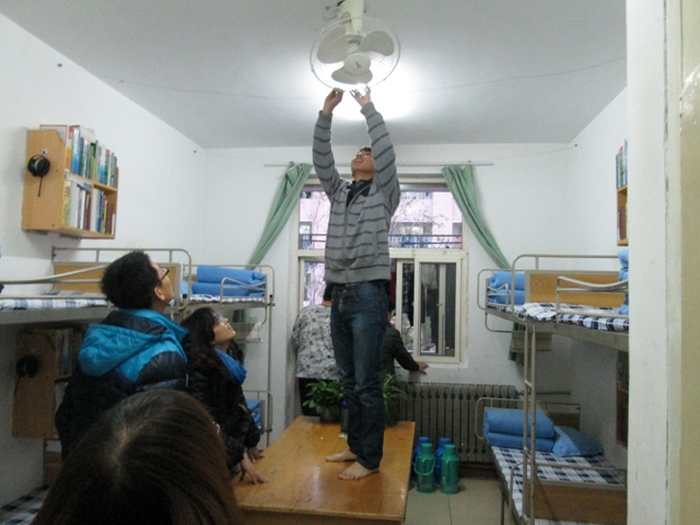 当天下午马书记一行人齐聚21号学生宿舍楼下,开始了卫生检查的第一站。一整个楼层共有我院的31个宿舍,老师和学生干部一间一间的耐心检查,不放过任何一个卫生死角。马老师仔细地检查着宿舍窗户、阳台、独立卫生间的打扫情况,并随时指出存在的问题,两位辅导员老师也就宿舍物品不适当的摆放进行了纠正,同行的生活部部长张雪玲、心理部部长孙悦认真的记录着各个宿舍出现的问题。随后,老师和学生干部又对12号楼女生宿舍、3号楼男生宿舍进行了卫生检查,马老师再次强调了墙角蜘蛛网的打扫、阳台卫生问题。对于好的宿舍马老师鼓励他们继续保持,对于不好的宿舍,马老师毫不留情的指出了问题所在,要求重新整理。
