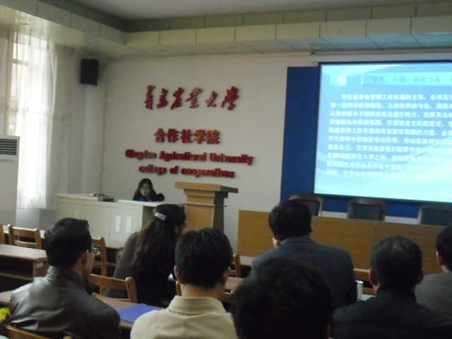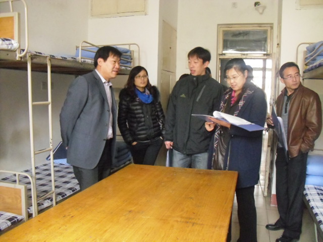 王效仿书记首先代表学院党政热烈欢迎考评组的到来,同时对我院的总体情况和宿舍管理工作进行了简要介绍。随后,学院团委书记马伟萍以PPT的形式就我院学生宿舍管理工作向考评小组进行了汇报,从学院概况、宿舍管理具体工作、特色工作以及努力方向等四方面做了详细的介绍。重点汇报了学院在学生宿舍管理工作方面的创新突破点,如宿舍内务检查两半制以及学生提前五分钟到教室的倡议。并同时表示,将不断提高内务管理的能力,努力将学生宿舍管理工作做得更好,使我院的内务迈向一个新的台阶。汇报结束后,考评小组深入宿舍进行了实地指导评分。