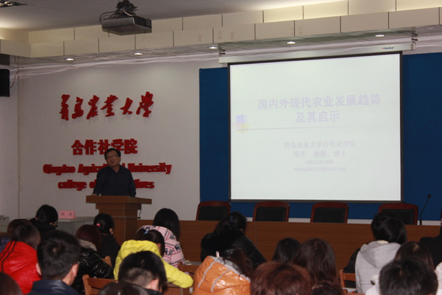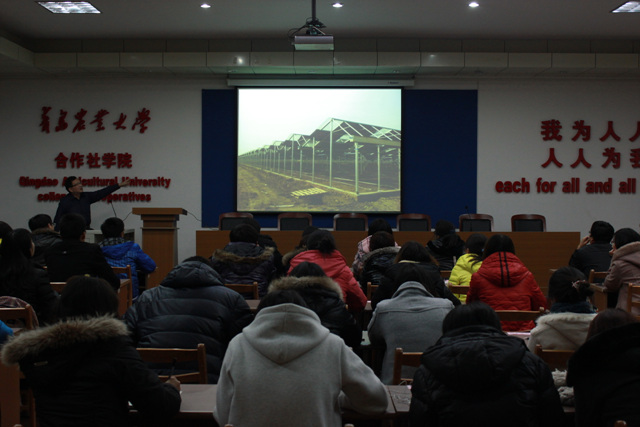 郑丹教授主要从“什么是现代农业”“国内外现代农业发展介绍”“国内外现代农业的发展对我们的启示”三个部分阐释了“国内外现代农业发展趋势及启示”这一主题,将合作社的类型、现代农业发展的国内外形势、发展前景、发展过程的弊病一一进行了分析讲解。精彩的演讲、生动的案例吸引着在场的所有人,每个同学都认真听讲并及时做好记录。