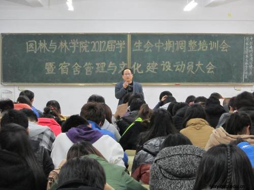 为让我院12届学生会干事尽早的适应并融入到自己的工作中来,同时进一步加强学院的宿舍管理及文化建设。3月31日,园林与林学院于教学区C203举行了园林与林学院2012届学生会中期调整培训会暨宿舍管理与文化建设动员大会。会议由正科级辅导员孙贝贝主持,党总支副书记肖伟做重要部署,全体学生会成员参加会议。