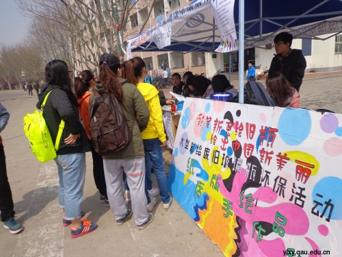 为积极响应十八大提出的建设美丽环保中国的号召,同时培养同学们的环保意识,4月21日,由园林与林学院举办的“彩笔新意绘旧瓶,绘出中国新美丽”大型彩绘废旧玻璃瓶环保活动的前期宣传活动在东苑3号楼前正式开始。