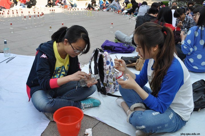 5月5日,青岛农业大学大型彩绘废旧玻璃瓶环保活动在文经楼广场正式开始,活动由园林与林学院社团联合会主办,校团委副书记王峰亲临活动现场。
