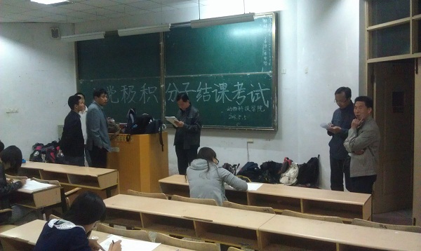 5月5日晚,青岛农业大学动物科技学院入党积极分子考试于教学楼D203、D204举行,本次考试从晚上7点开始,到8点30分结束,为时90分钟,本次考试监考员由经济与管理学院正科级辅导员张婷、动物科技学院辅导员王洋以及研究生担任。