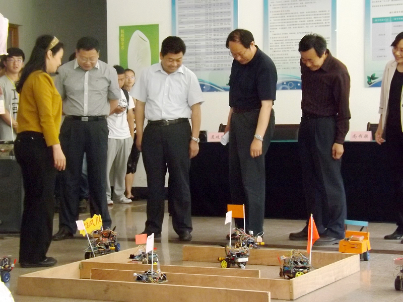 本次比赛共分成小车组、智能娃娃组和LED小灯组、创意组四个小组,分别在工程楼一楼大厅、214、216举行。比赛过程中,各位领导来到各比赛场地,观看学生的创意并提出宝贵的意见。比赛中各小组充分展示了自己的特色,同一小组内的作品大不相同,参赛选手们通过作品把自己的创意充分展现在了评审老师眼前。作品种类之多令人眼花缭乱,作品外观更是让人眼前一亮。比赛过程中,参赛选手向评审老师演示自己参赛作品同时,针对其设计方案与功能进行详细的阐述,评审老师认真听取,仔细观察并对参赛选手进行现场提问。现场观众全神贯注地观看比赛,现场时时响起热烈的掌声。
